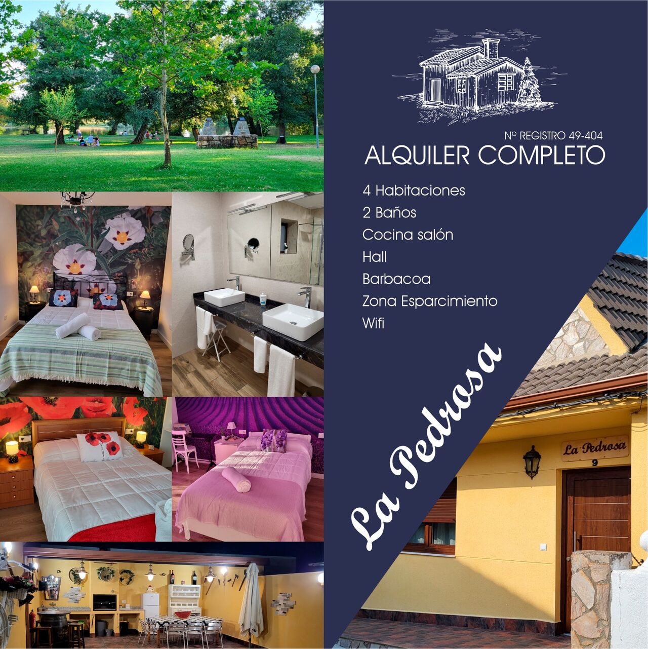 CALL +34617481619La Pedrosa es un bonito alojamiento situado en Camarzana de Tera, tiene capacidad para 6 personas distribuidas en 2 habitación de matrimonio y 2 individuales. Además dispone de cocina totalmente equipada con lavavajillas y microondas, comedor y 2 baños completos.